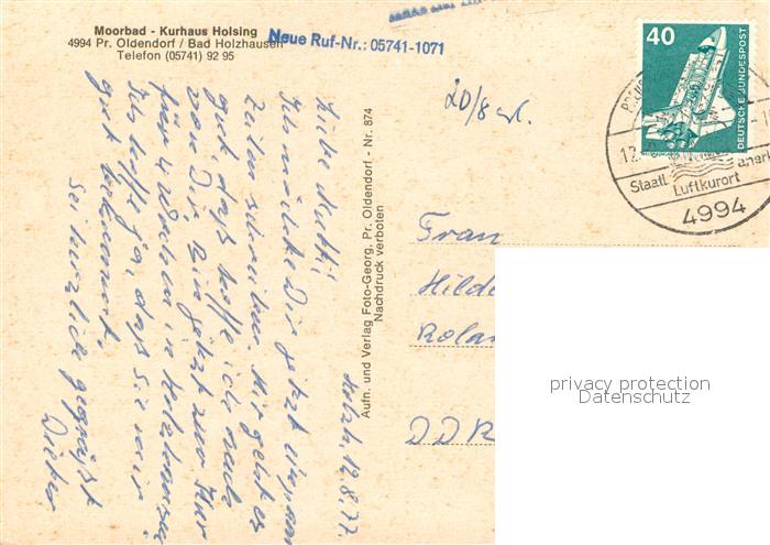 73708640 alte Postkarte Bad Holzhausen Luebbecke Moorbad Kurhaus Holsing Restaurant Hallenbad postalisch gelaufen Erhaltung siehe scans [FriedD77] KatCode: 11110005770036