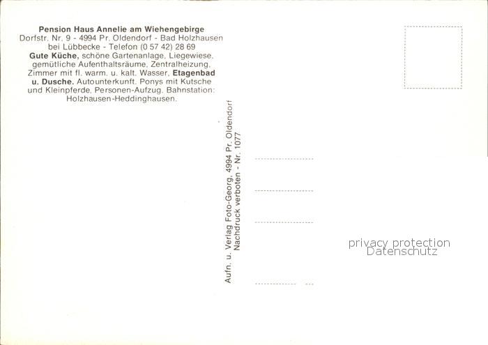 71996377 Bad Holzhausen Luebbecke Oldendorf Pension Haus Annelie postalisch nicht gelaufen Erhaltung siehe scans KatCode: 11110005770036