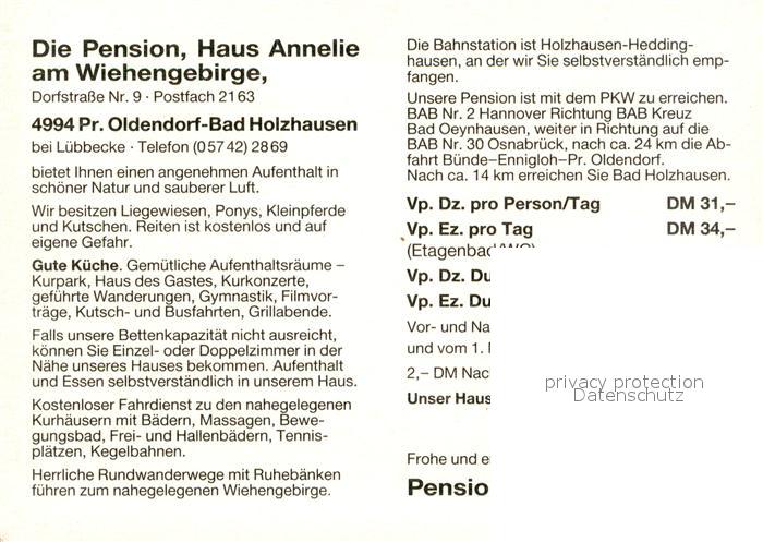 73660107 Bad Holzhausen Luebbecke Pension Haus Annelie am Wiehengebirge postalisch nicht gelaufen Werbekarte (keine Postkarte) Erhaltung siehe scans [FriedD77] KatCode: 11110005770036