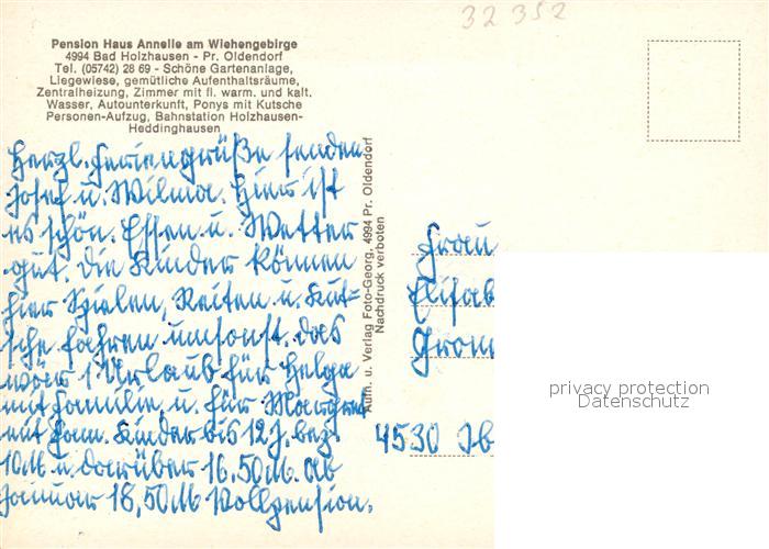 73203591 Bad Holzhausen Luebbecke Pension Haus Annelie am Wiehengebirge postalisch nicht gelaufen Erhaltung siehe scans [FriedD77] KatCode: 11110005770036