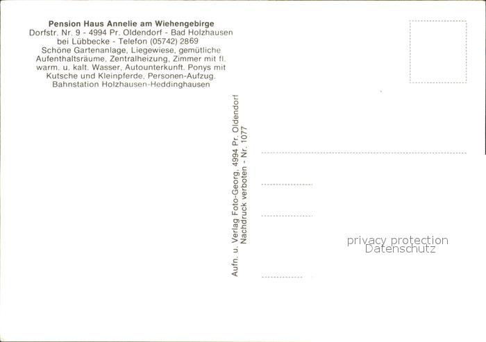 72014766 Bad Holzhausen Luebbecke Pension Haus Annelie am Wiehengebirge postalisch nicht gelaufen Erhaltung siehe scans KatCode: 11110005770036