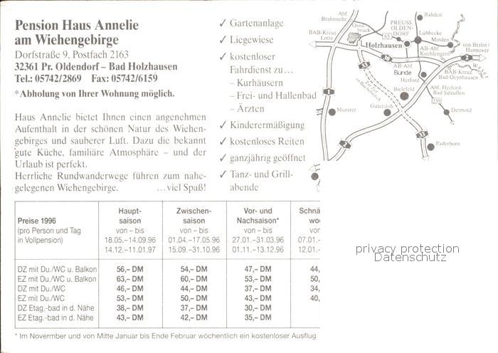 72036838 Bad Holzhausen Luebbecke Pension Haus Annelie Garten Gastraum Zimmer Ponyreiten postalisch nicht gelaufen Werbekarte (keine Postkarte) Erhaltung siehe scans KatCode: 11110005770036
