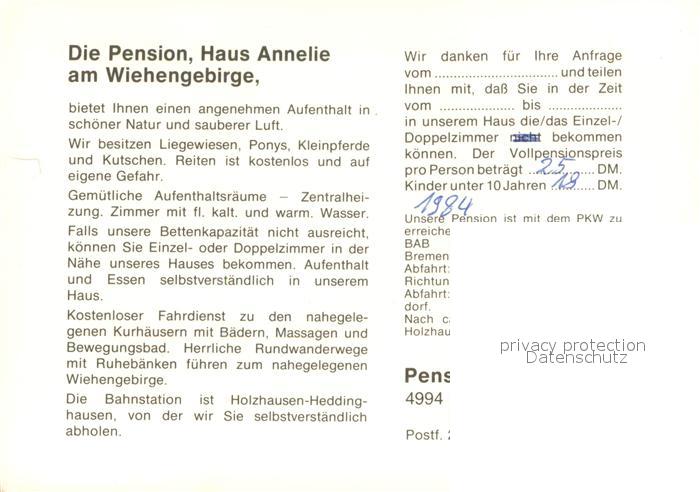 73711807 Bad Holzhausen Luebbecke Pension Haus Annelie Gartenterrasse Brunnen postalisch nicht gelaufen Werbekarte (keine Postkarte) Erhaltung siehe scans [WerneD78] KatCode: 11110005770036