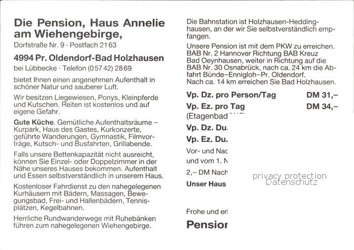 72282291 Bad Holzhausen Luebbecke Pension Haus Annelie Swimming Pool Wiehengebirge postalisch nicht gelaufen Werbekarte (keine Postkarte) Erhaltung siehe scans KatCode: 11110005770036