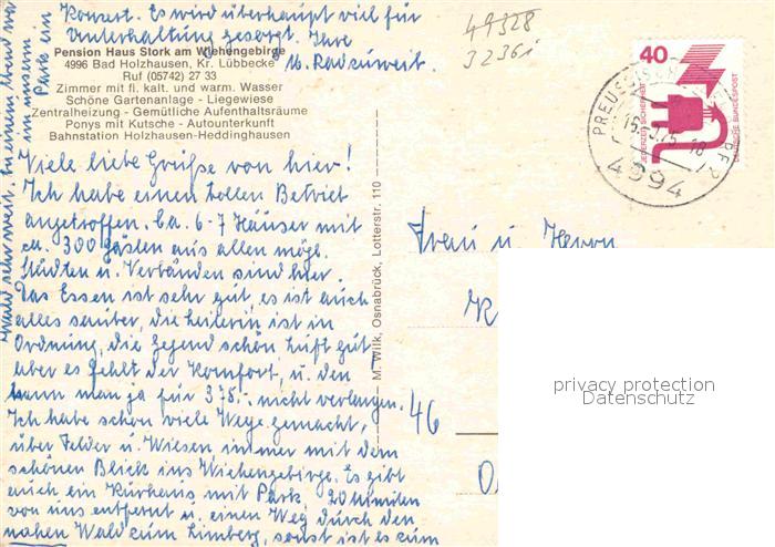72880244 alte Postkarte Bad Holzhausen Luebbecke Pension Haus Stork am Wiehengebirge postalisch gelaufen Erhaltung siehe scans [FriedD77] KatCode: 11110005770036