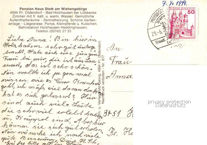 72869631 alte Postkarte Bad Holzhausen Luebbecke Pension Haus Stork postalisch gelaufen Erhaltung siehe scans [LiesaD40] KatCode: 11110005770036
