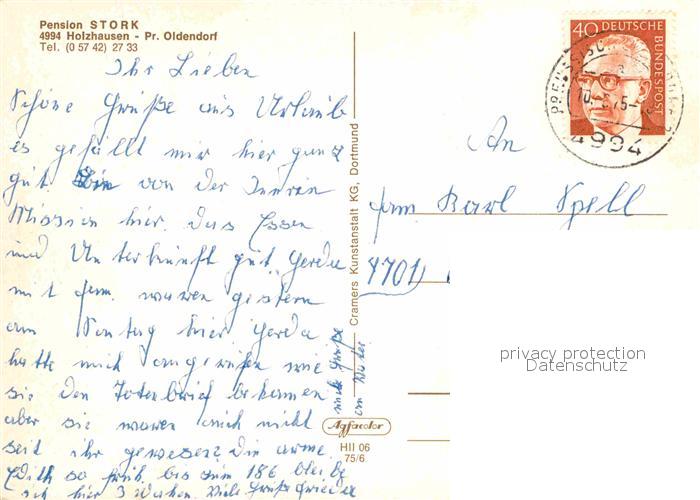 72667558 alte Postkarte Bad Holzhausen Luebbecke Pension Stork postalisch gelaufen Erhaltung siehe scans [AndreD76] KatCode: 11110005770036