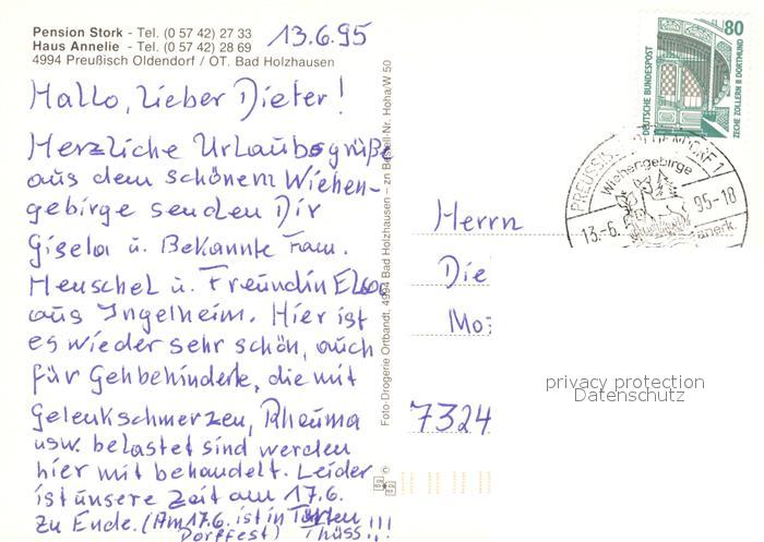 73232646 alte Postkarte Bad Holzhausen Luebbecke Pension Stork Haus Annelie Hauptstrasse Kirche postalisch gelaufen Erhaltung siehe scans [KathaD81] KatCode: 11110005770036