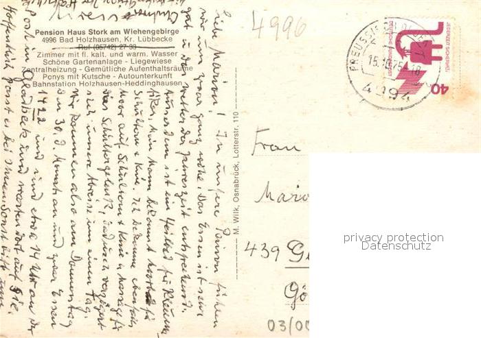 73184153 alte Postkarte Bad Holzhausen Luebbecke Pension Stork postalisch gelaufen Erhaltung siehe scans [LiesaD40] KatCode: 11110005770036