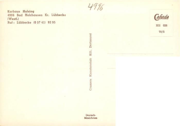 73888169 Bad Holzhausen Luebbecke Preussisch Oldendorf NRW Kurhaus Holsing postalisch nicht gelaufen Erhaltung siehe scans [FriedD77] KatCode: 11110005770036