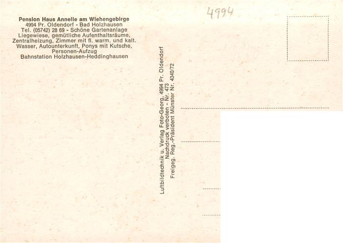 73874970 Bad Holzhausen Luebbecke Preussisch Oldendorf NRW Pension Haus Annelie am Wiehengebirge postalisch nicht gelaufen Fliegeraufnahme Erhaltung siehe scans [FriedD77] KatCode: 11110005770036