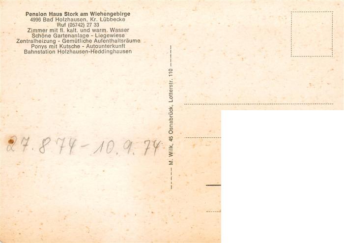 73905759 Bad Holzhausen Luebbecke Preussisch Oldendorf NRW Pension Stork BrunnenTerrasse Ponykutsche Garten postalisch nicht gelaufen Erhaltung siehe scans [FriedD77] KatCode: 11110005770036