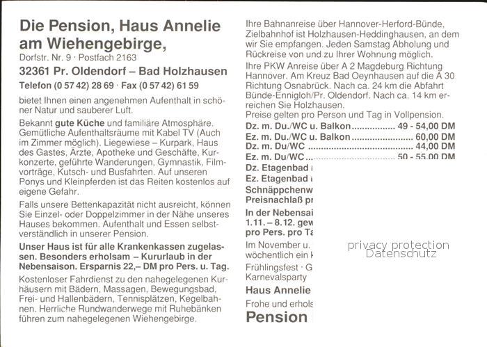 72557375 Bad Holzhausen Luebbecke Preussisch Oldendorf Pension Haus Annelie Wiehengebirge postalisch nicht gelaufen Werbekarte (keine Postkarte) Erhaltung siehe scans [KathaD79] KatCode: 11110005770036
