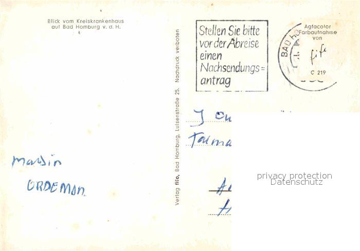 72728990 alte Postkarte Bad Homburg Blick vom Kreiskrankenhaus postalisch gelaufen Erhaltung siehe scans [AndreD76] KatCode: 11110006434001