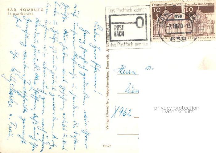 72970368 alte Postkarte Bad Homburg Erloeserkirche postalisch gelaufen Erhaltung siehe scans [FriedD77] KatCode: 11110006434001