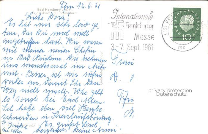 72445807 alte Postkarte Bad Homburg Erloeserkirche mit Schlossturm postalisch gelaufen Erhaltung siehe scans KatCode: 11110006434001