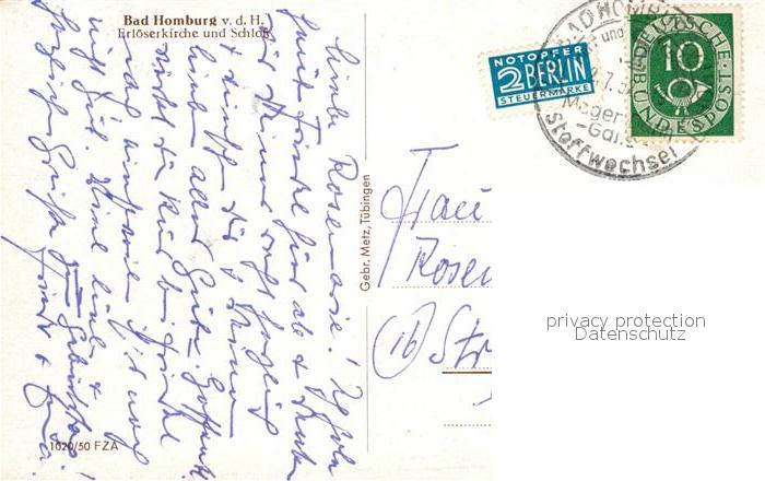 72974298 alte Postkarte Bad Homburg Erloeserkirche und Schloss postalisch gelaufen Erhaltung siehe scans [FriedD77] KatCode: 11110006434001