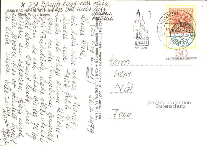 72572574 alte Postkarte Bad Homburg Fliegeraufnahme mit Klinik Wingertsberg postalisch gelaufen Erhaltung siehe scans [LiesaD40] KatCode: 11110006434001