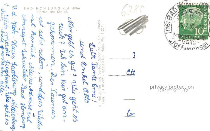 73283109 alte Postkarte Bad Homburg Fliegeraufnahme Schloss Jugendherberge Haus Saalburg postalisch gelaufen Erhaltung siehe scans [NatalD47] KatCode: 11110006434001