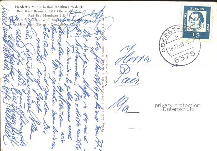 72071310 alte Postkarte Bad Homburg Hardert’s Muehle postalisch gelaufen Erhaltung siehe scans KatCode: 11110006434001