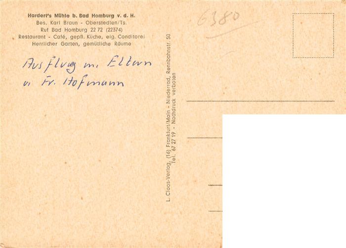73887927 Bad Homburg Hardert’s Muehle postalisch nicht gelaufen Erhaltung siehe scans [WerneD78] KatCode: 11110006434001