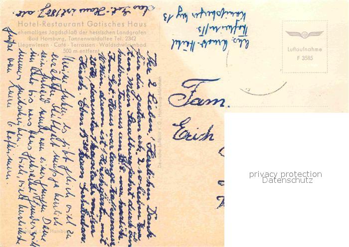 72880213 alte Postkarte Bad Homburg Hotel Restaurant Gotisches Haus Fliegeraufnahme postalisch gelaufen Erhaltung siehe scans [FriedD77] KatCode: 11110006434001