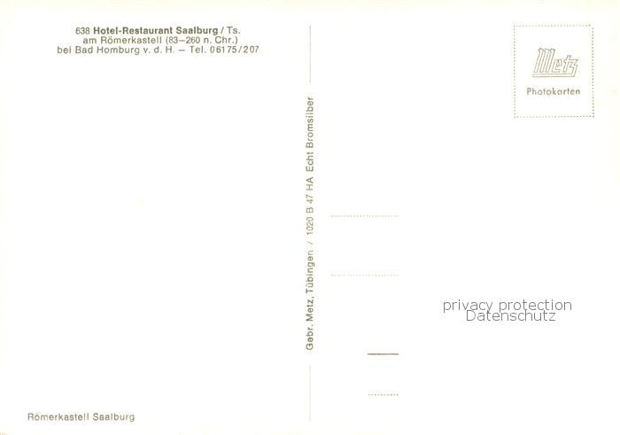 73763212 Bad Homburg Hotel Restaurant Saalburg Am Roemerkastell postalisch nicht gelaufen Erhaltung siehe scans [WerneD78] KatCode: 11110006434001
