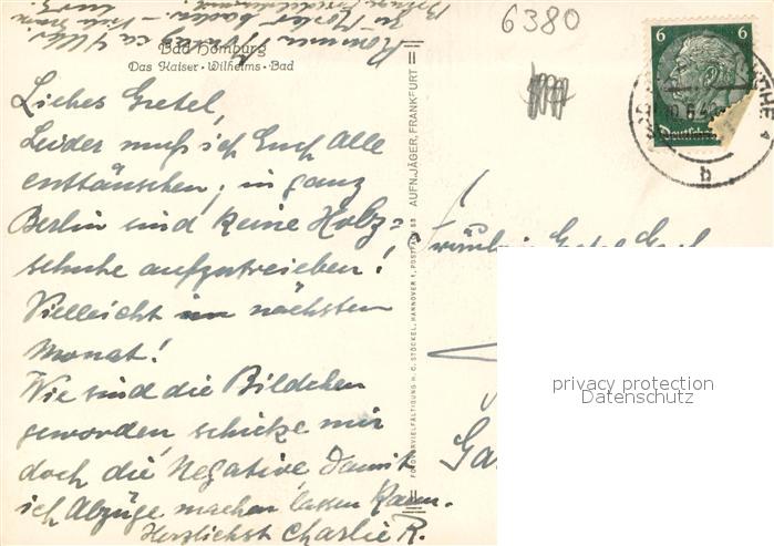 73691838 alte Postkarte Bad Homburg Kaiser Wilhelms Bad postalisch gelaufen Erhaltung siehe scans [WerneD78] KatCode: 11110006434001