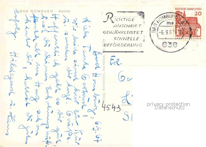 72630348 alte Postkarte Bad Homburg Kasino postalisch gelaufen Erhaltung siehe scans [LiesaD40] KatCode: 11110006434001