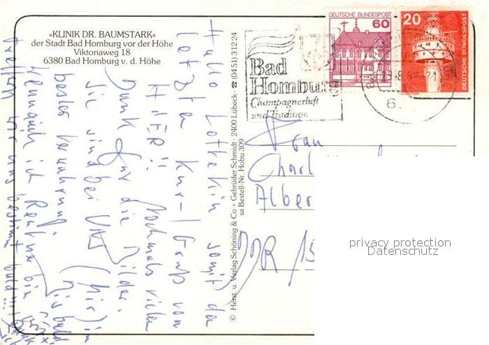 73197109 alte Postkarte Bad Homburg Klinik Doktor Baumstark Hallenbad Speisesaal postalisch gelaufen Erhaltung siehe scans [KathaD81] KatCode: 11110006434001