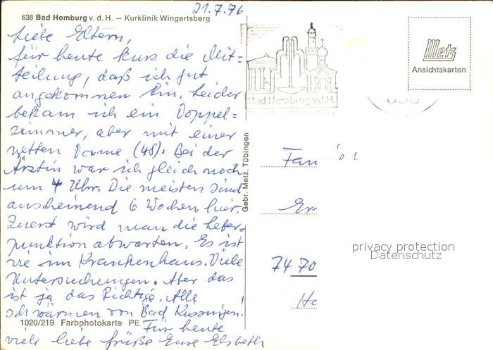 72460742 alte Postkarte Bad Homburg Klinik Wingertsberg postalisch gelaufen Erhaltung siehe scans KatCode: 11110006434001