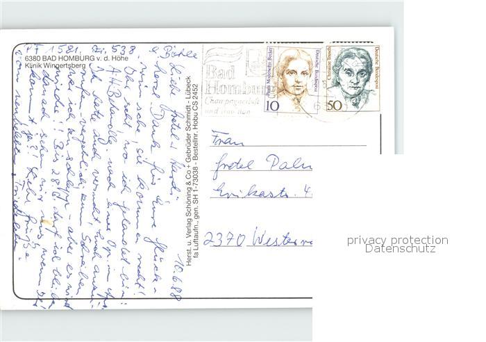 72081103 alte Postkarte Bad Homburg Klinik Wingertsberg Fliegeraufnahme postalisch gelaufen Erhaltung siehe scans KatCode: 11110006434001