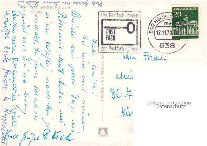 72900303 alte Postkarte Bad Homburg Kurhaus postalisch gelaufen Erhaltung siehe scans [LiesaD40] KatCode: 11110006434001
