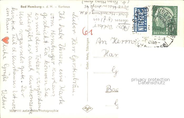 72534377 alte Postkarte Bad Homburg Kurhaus postalisch gelaufen Erhaltung siehe scans [AndreD76 kt121box] KatCode: 11110006434001
