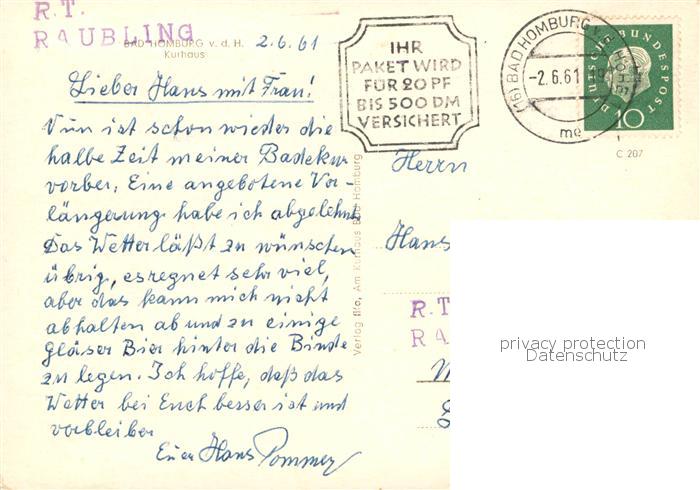 73803642 alte Postkarte Bad Homburg Kurhaus postalisch gelaufen Erhaltung siehe scans [WerneD78] KatCode: 11110006434001