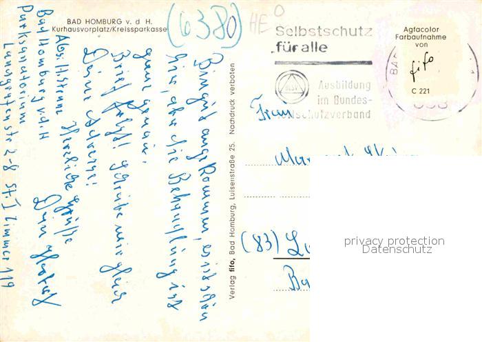 72867443 alte Postkarte Bad Homburg Kurhausvorplatz Kreissparkasse postalisch gelaufen Erhaltung siehe scans [LiesaD40] KatCode: 11110006434001