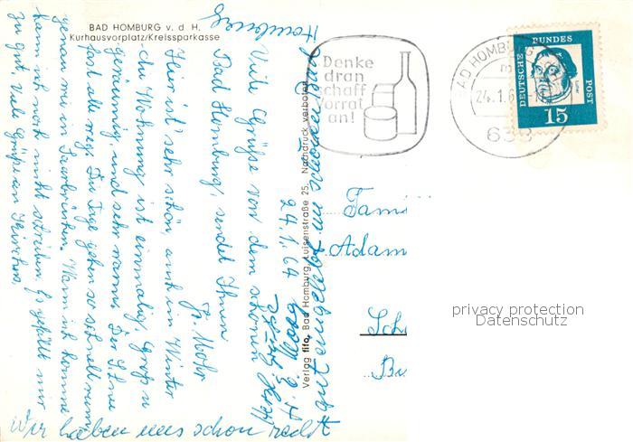 73796573 alte Postkarte Bad Homburg Kurhausvorplatz Kreissparkasse postalisch gelaufen Erhaltung siehe scans [WerneD78] KatCode: 11110006434001