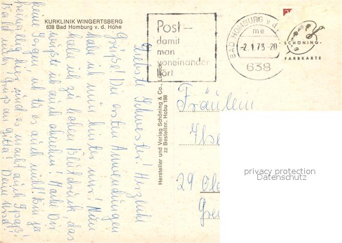 73110483 alte Postkarte Bad Homburg Kurklinik Wigertsberg postalisch gelaufen Erhaltung siehe scans [NatalD47] KatCode: 11110006434001