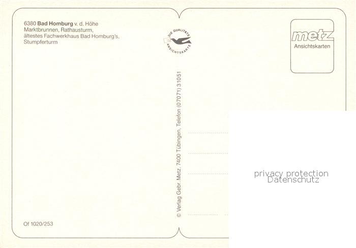 73201649 Bad Homburg Marktbrunnen Rathausturm aeltestes Fachwerkhaus Stumpferturm postalisch nicht gelaufen Erhaltung siehe scans [KathaD81] KatCode: 11110006434001