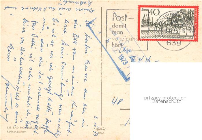 73654641 alte Postkarte Bad Homburg Parksanatorium postalisch gelaufen Erhaltung siehe scans [WerneD78] KatCode: 11110006434001