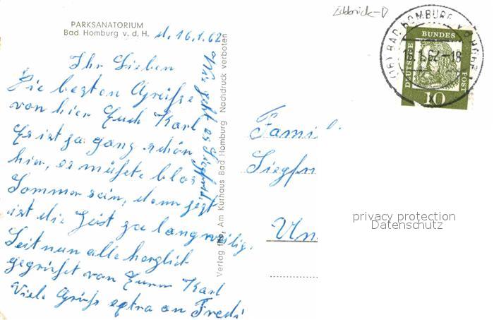 72748043 alte Postkarte Bad Homburg Parksanatorium postalisch gelaufen Erhaltung siehe scans [FriedD77] KatCode: 11110006434001