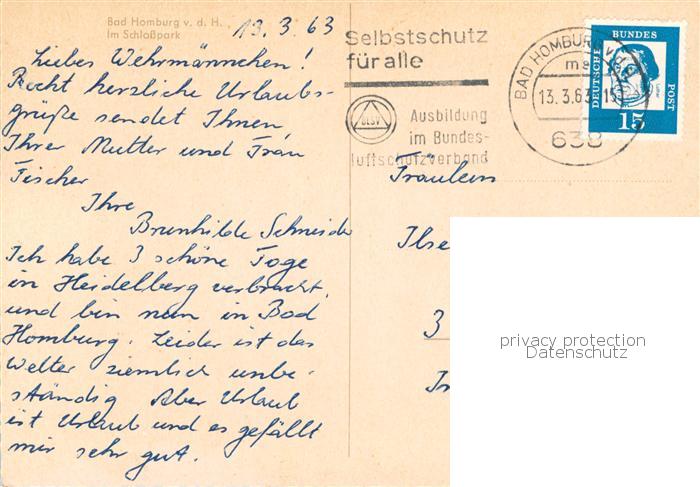 73811597 alte Postkarte Bad Homburg Partie im Schlosspark Teich Schloss postalisch gelaufen Erhaltung siehe scans [FriedD77] KatCode: 11110006434001