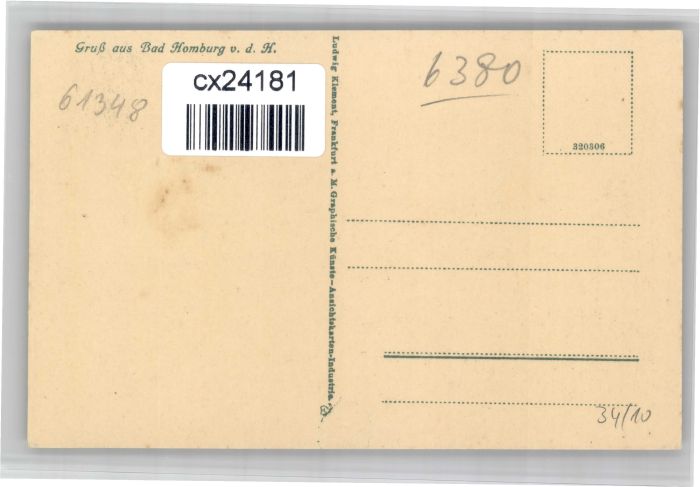 30767623 Bad Homburg Reichskuranstalt fuer Kriegsbeschaeftigte Gustav Weigand Stiftung * postalisch nicht gelaufen KatCode: 11110006434001