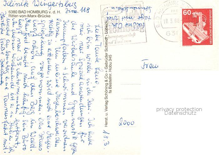 73863694 alte Postkarte Bad Homburg Ritter von Marx Bruecke postalisch gelaufen Erhaltung siehe scans [WerneD78] KatCode: 11110006434001