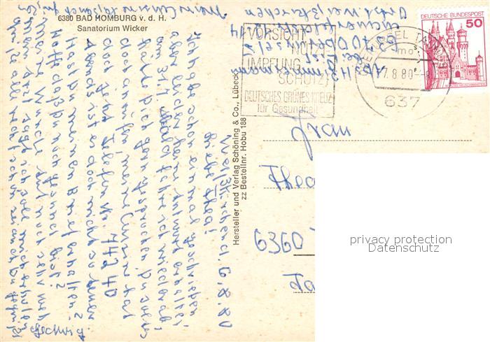 73259343 alte Postkarte Bad Homburg Sanatorium Wicker postalisch gelaufen Erhaltung siehe scans [NatalD47] KatCode: 11110006434001