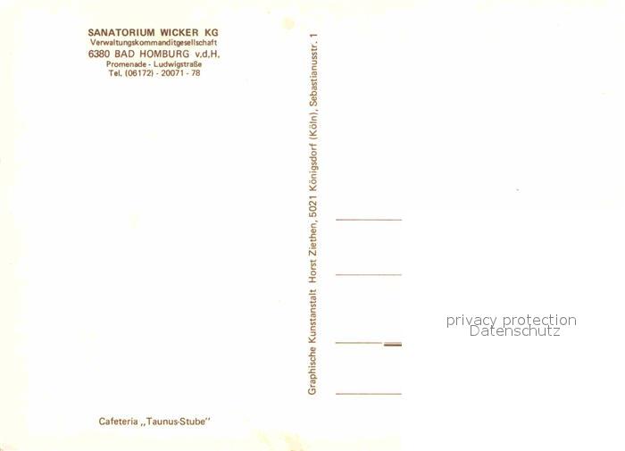 72715613 Bad Homburg Sanatorium Wicker KG Cafeteria Taunus Stube postalisch nicht gelaufen Erhaltung siehe scans [FriedD77] KatCode: 11110006434001