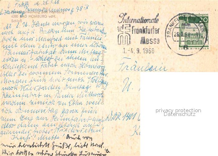 72833610 alte Postkarte Bad Homburg Schloss Kirche See Fliegeraufnahme postalisch gelaufen Erhaltung siehe scans [FriedD77] KatCode: 11110006434001