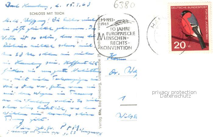 73692693 alte Postkarte Bad Homburg Schloss mit Teich postalisch gelaufen Erhaltung siehe scans [FriedD77] KatCode: 11110006434001