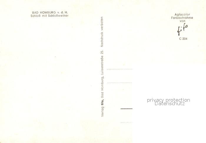 73084948 Bad Homburg Schloss Schlossweiher postalisch nicht gelaufen Erhaltung siehe scans [NatalD47] KatCode: 11110006434001