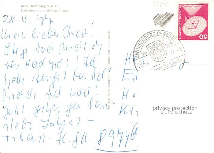 73137952 alte Postkarte Bad Homburg Schlossturm Erloeserkirche postalisch gelaufen Erhaltung siehe scans [NatalD47] KatCode: 11110006434001